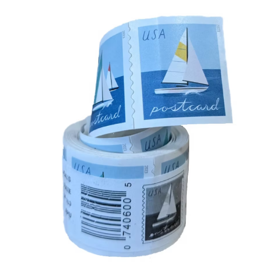 One of two Sailboats stamps issued in 2023 covering the postcard rate.